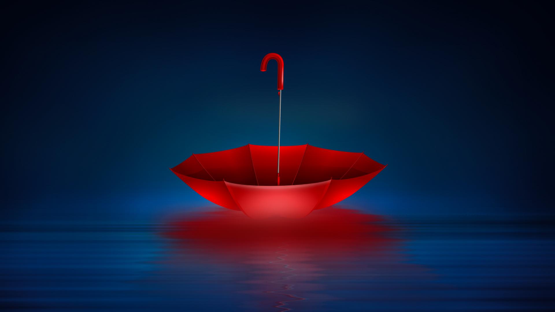 » Wallpaper Red inverted umbrella in water