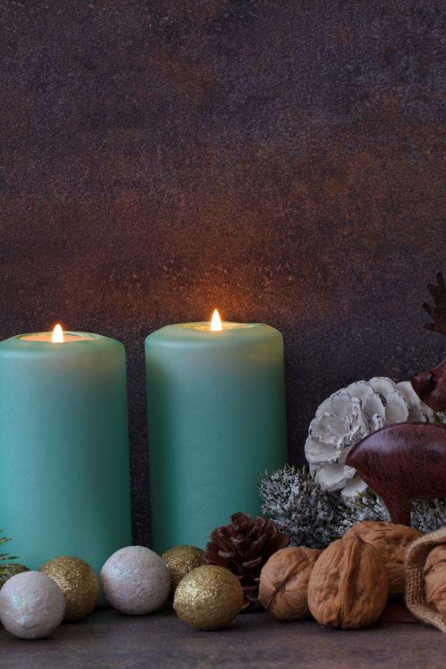 Wallpaper Burning candles on a wall background with decor