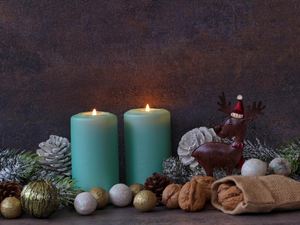 Wallpaper Burning candles on a wall background with decor