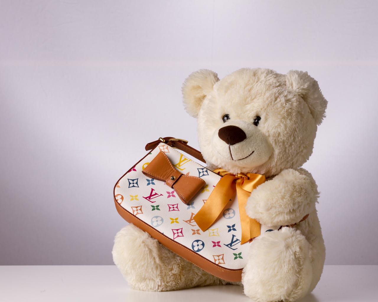 Wallpaper White teddy bear with handbag