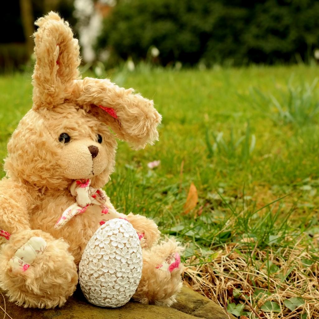 Wallpaper Toy hare on a stone in the grass