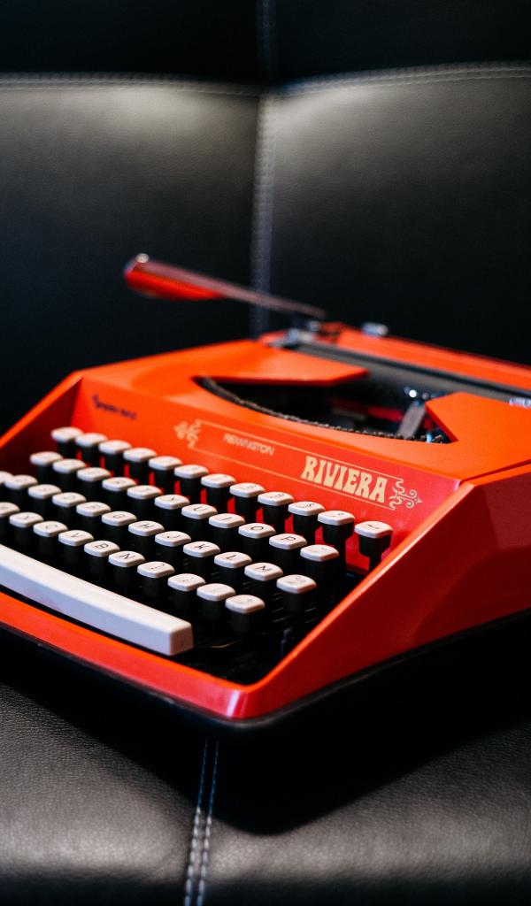 Wallpaper Old red typewriter on a black sofa
