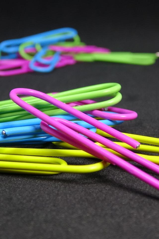 Wallpaper Multicolored paper clips on black table
