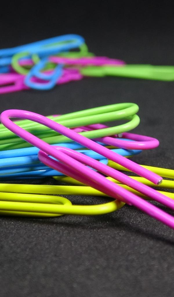 Wallpaper Multicolored paper clips on black table