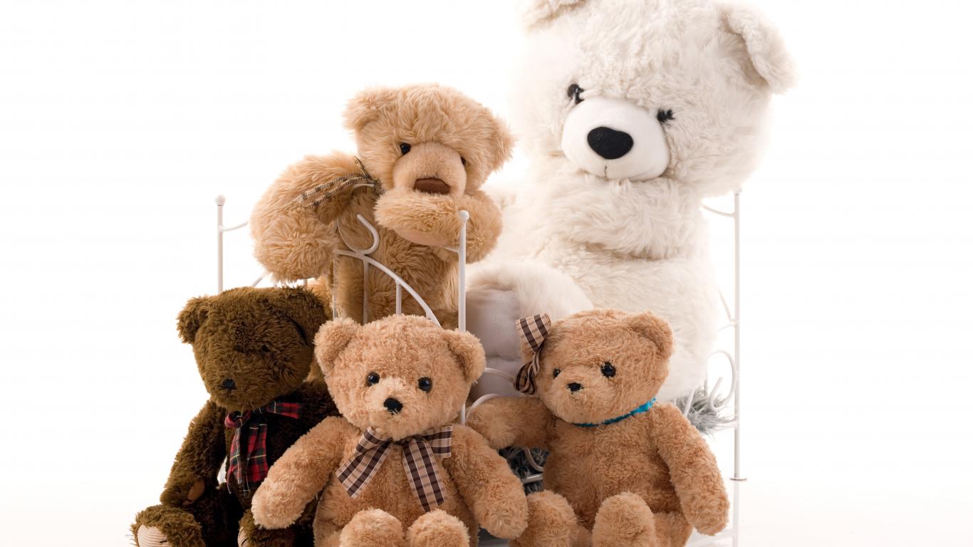 » Wallpaper Many toy bears on the baby bed