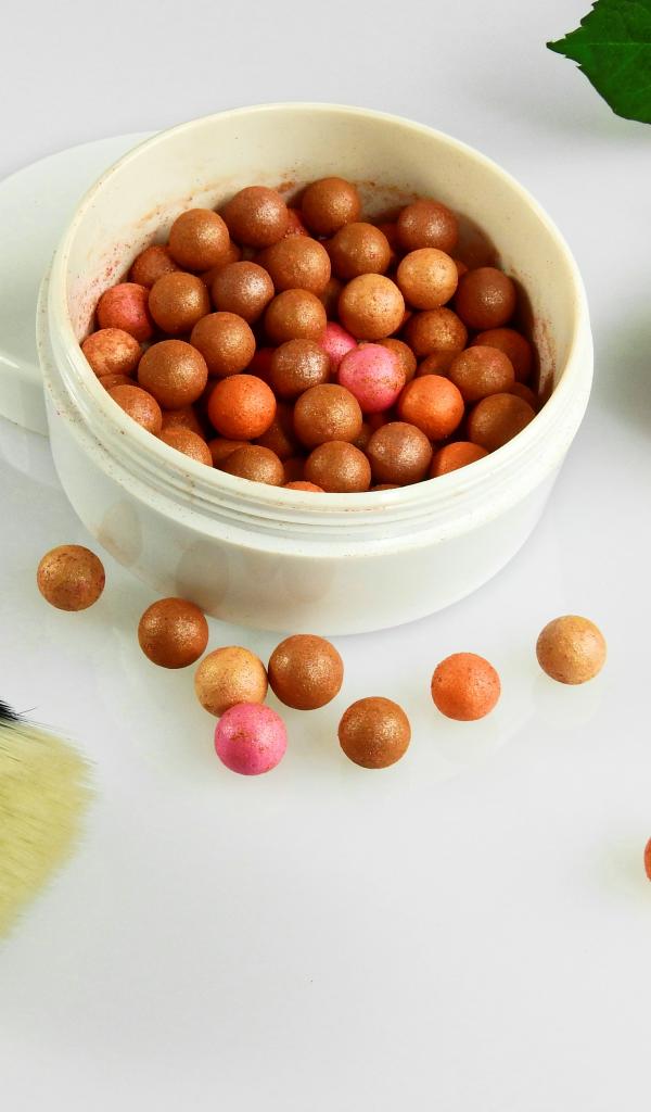 Wallpaper Powder ball on white background with brush and rose