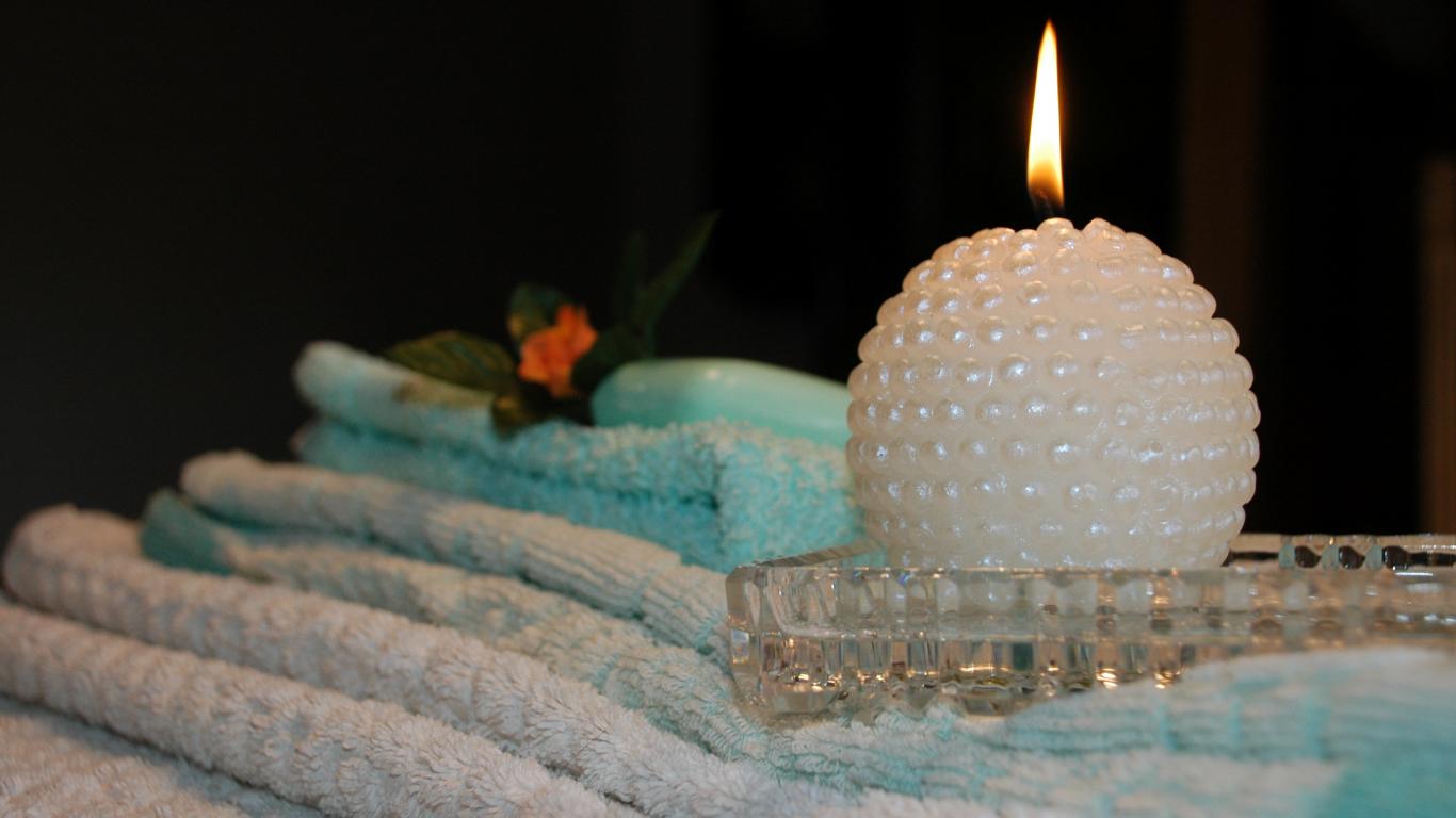 Wallpaper Beautiful lighted candle with towels