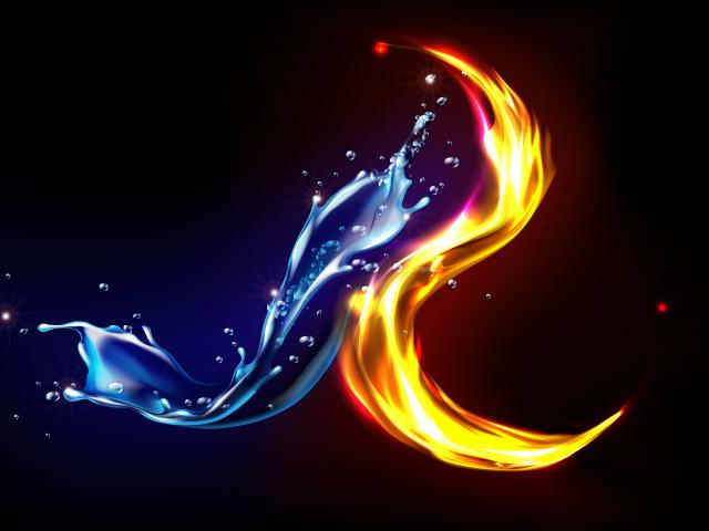 Wallpaper Fire and water on a black background