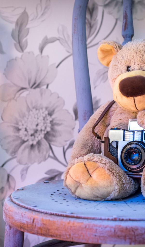 Wallpaper Toy teddy bear with a camera on an armchair