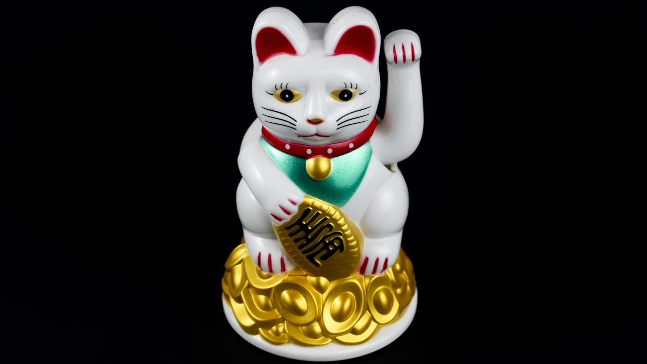 Wallpaper Japanese figurine maneki-neko cat on a black background