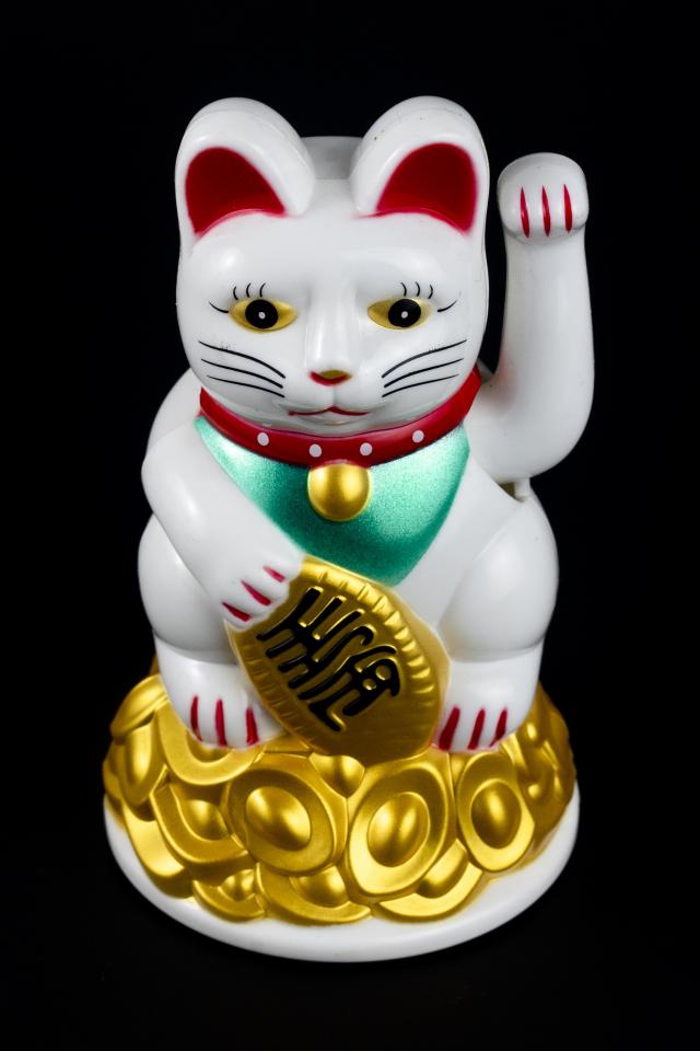 Wallpaper Japanese figurine maneki-neko cat on a black background