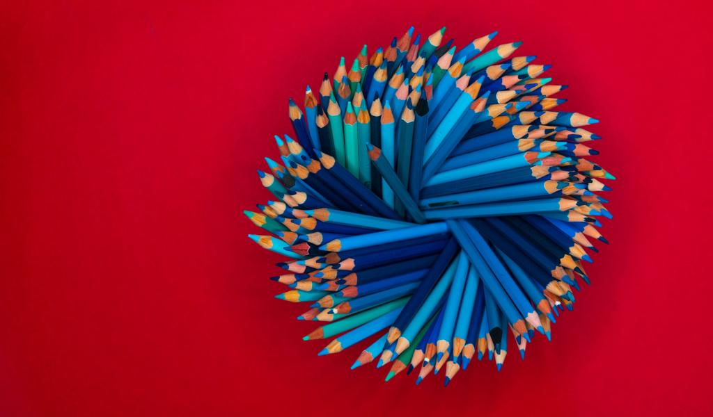 Wallpaper A lot of different pencils in a pencil case on a white background