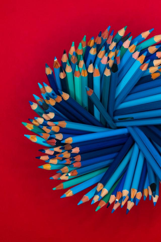 Wallpaper A lot of different pencils in a pencil case on a white background