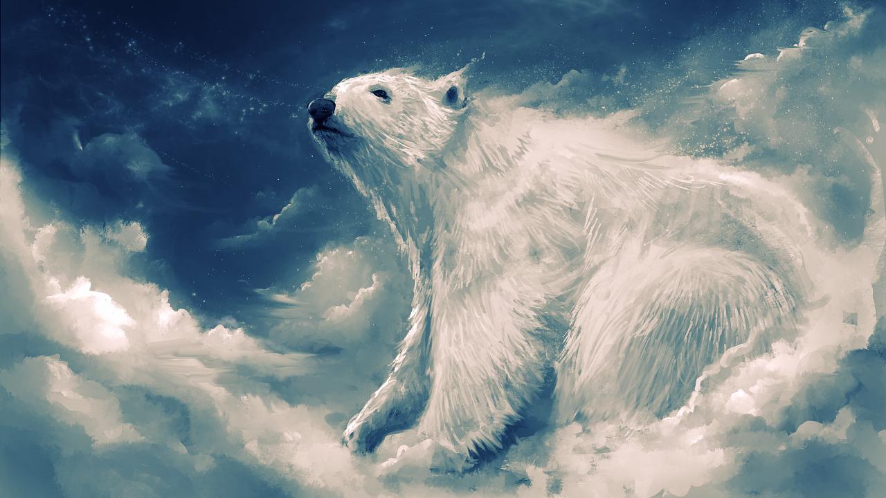 » Wallpaper Big white bear on the cloud