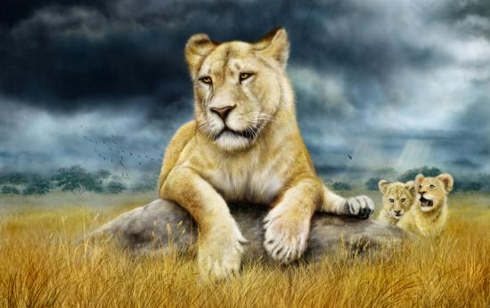 » Wallpaper Painted lioness with little lions