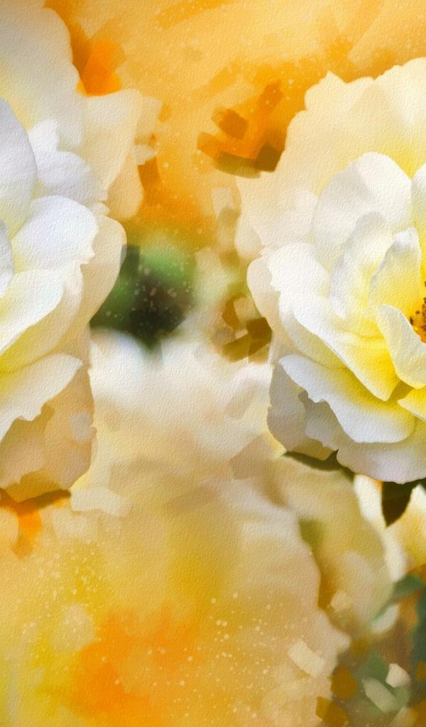 Wallpaper Beautiful painted blooming white roses