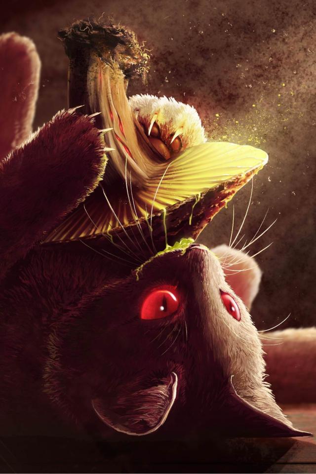 » Wallpaper Painted kitten with mushroom