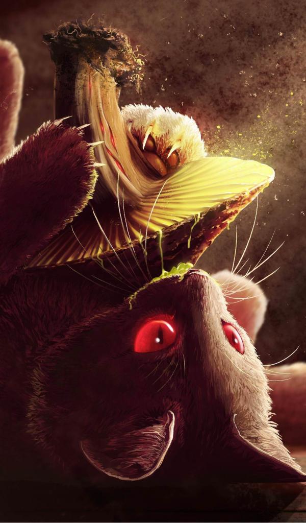 Wallpaper Painted kitten with mushroom