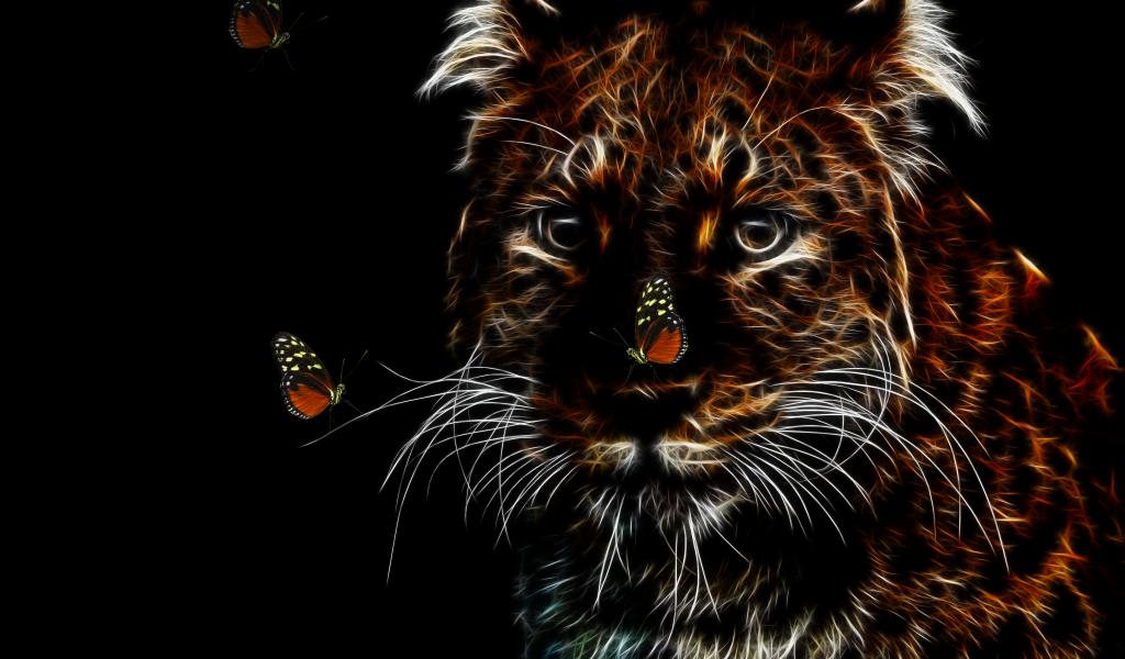 » Wallpaper Neon leopard with butterflies