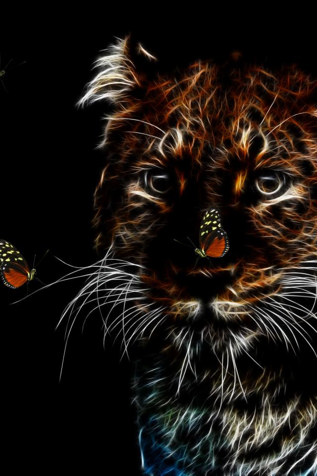 Wallpaper Fantastic neon blue butterflies against the background of the moon