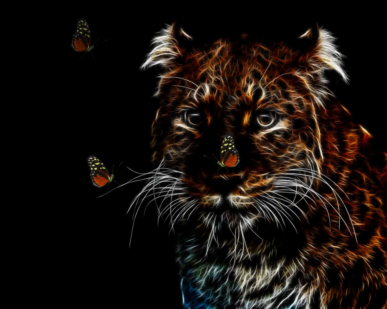 Wallpaper Fantastic neon blue butterflies against the background of the moon