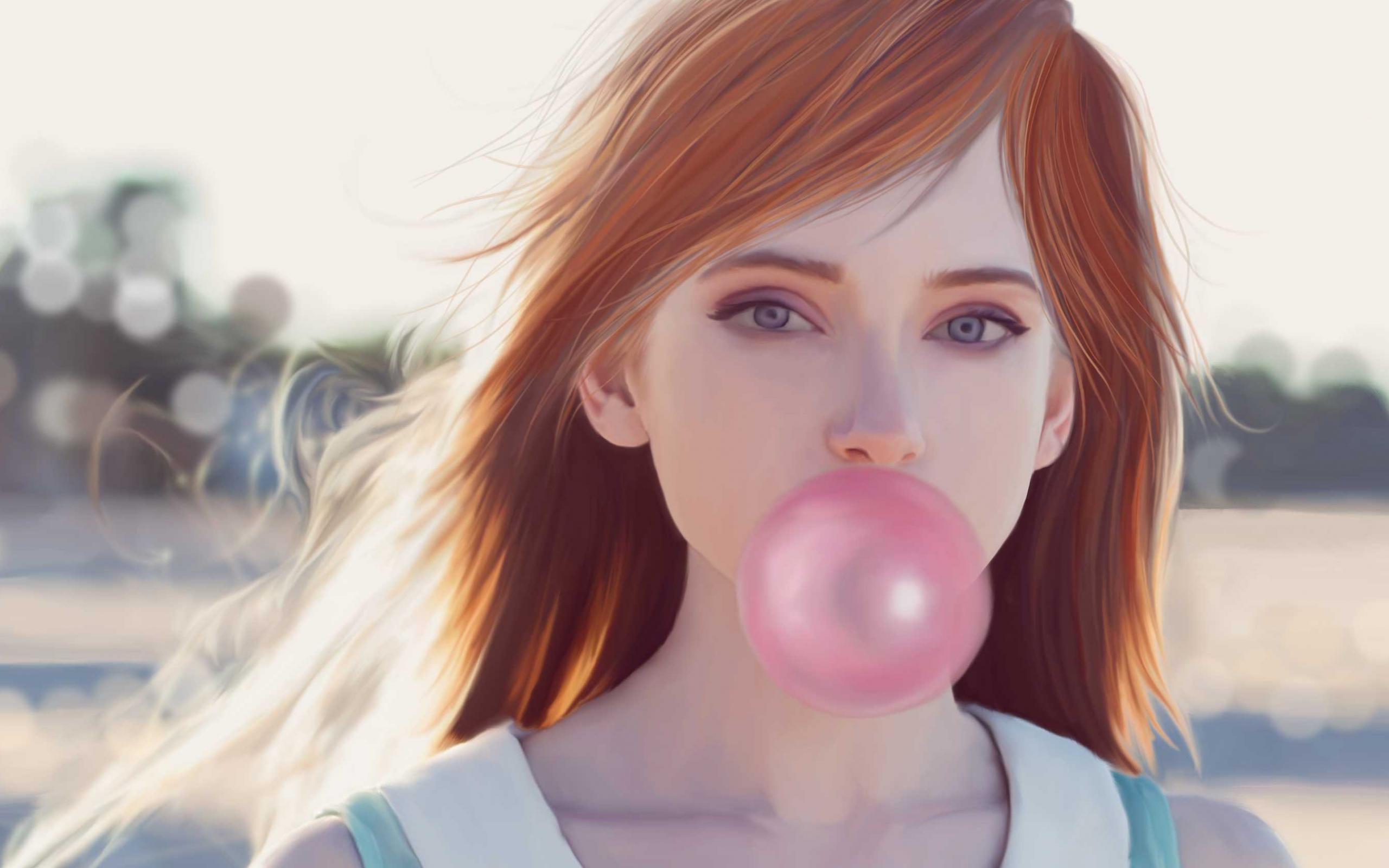 Wallpaper Drawn girl with chewing gum in mouth