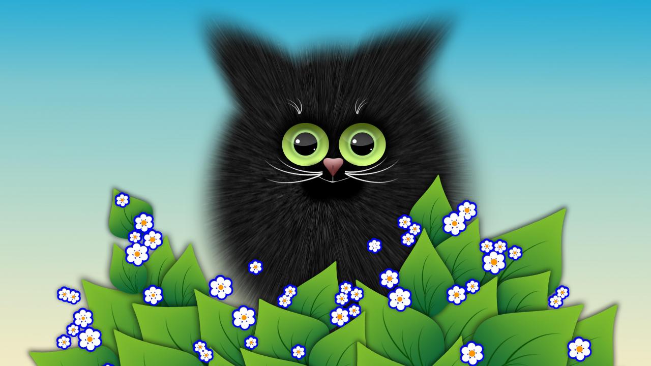 Wallpaper Black kitten with green leaves vector drawing