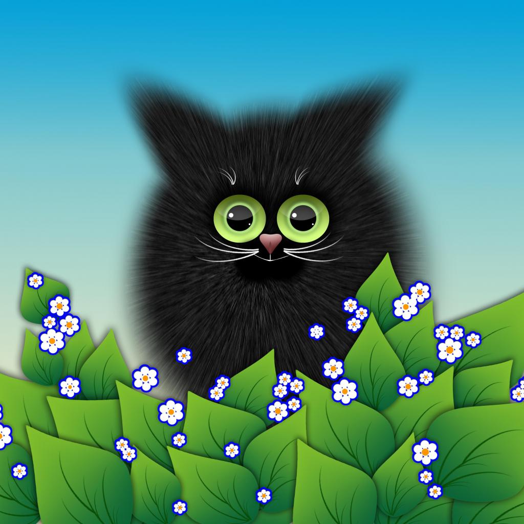 Wallpaper Black kitten with green leaves vector drawing
