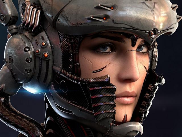 Wallpaper Blue-eyed girl cyborg in helmet