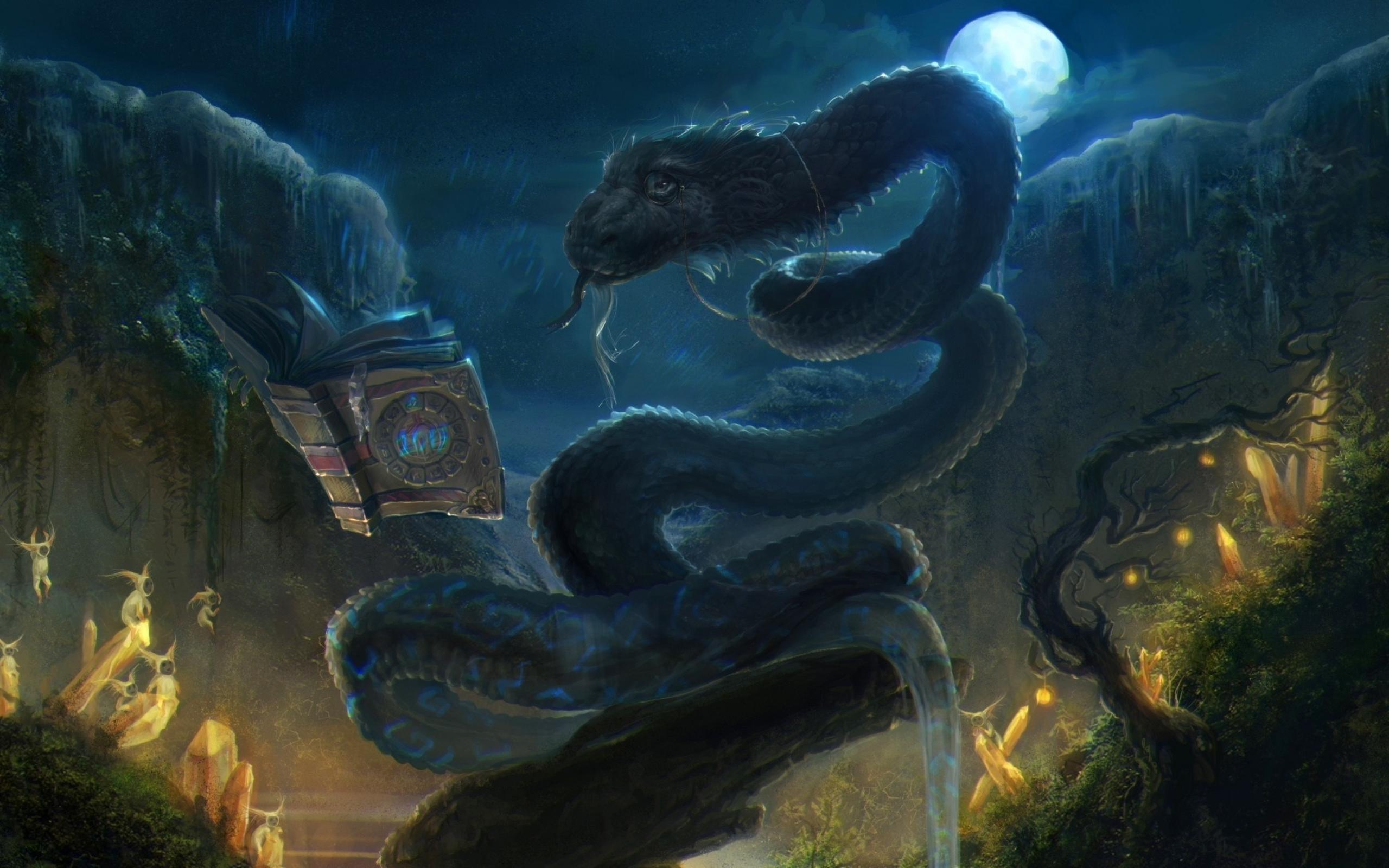 » Wallpaper Dragon reads magic book