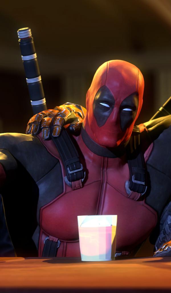 Wallpaper Deadpool in a bar with friends
