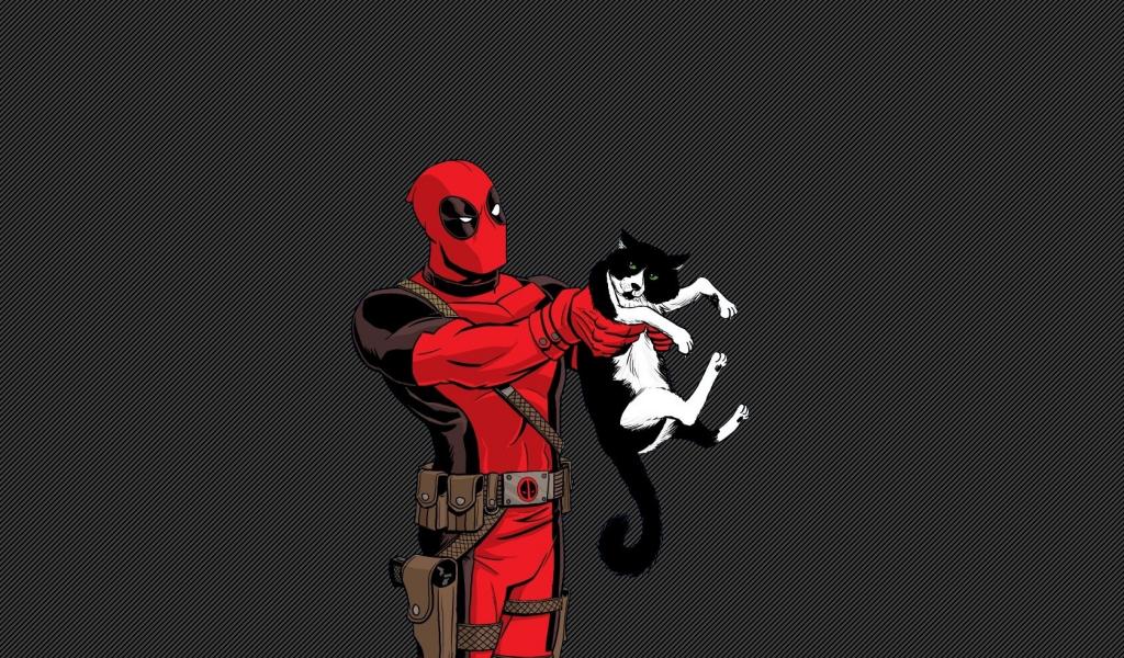 Wallpaper Deadpool holding a cat