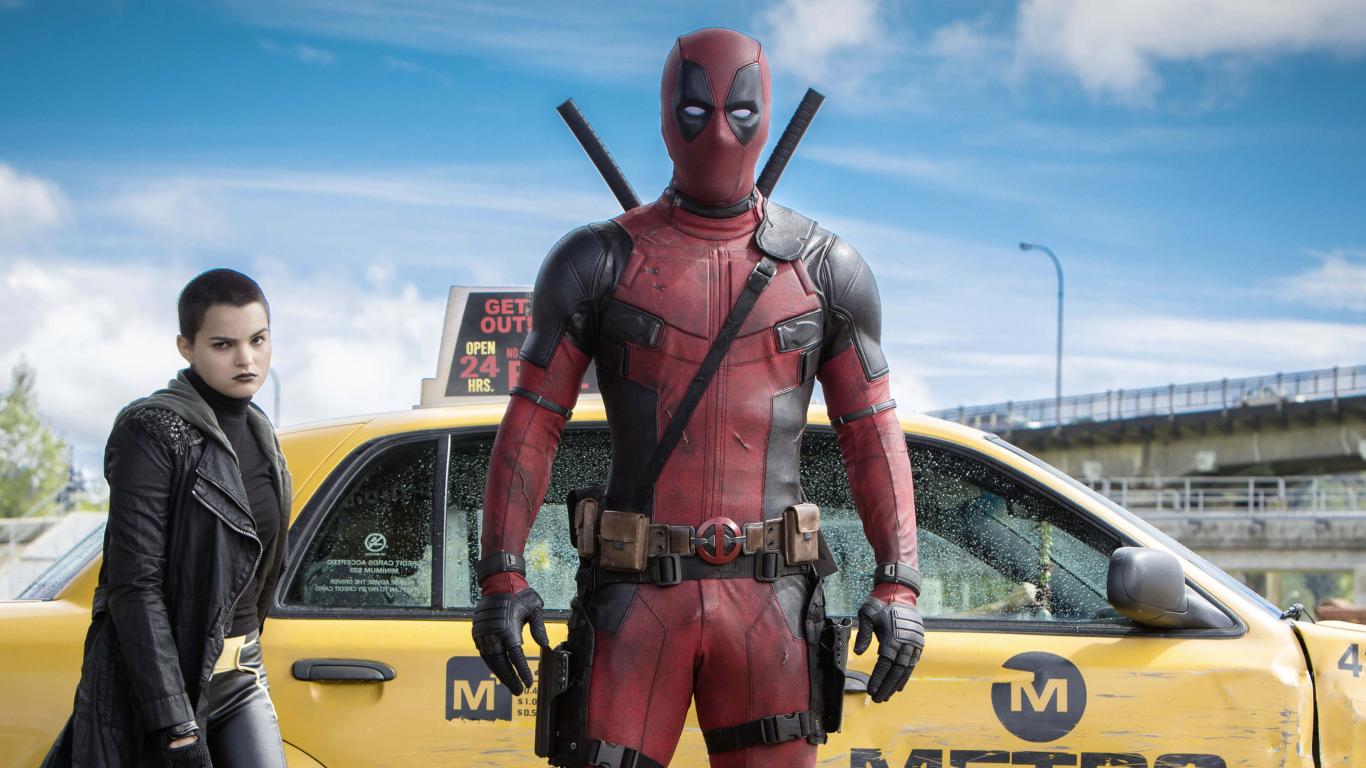 Wallpaper Deadpool in a taxi