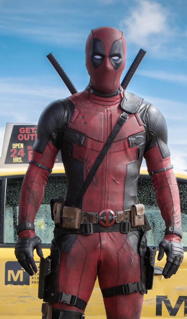 Wallpaper Deadpool in a taxi