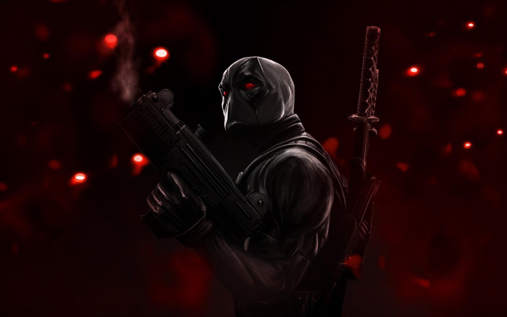 Wallpaper Evil Deadpool character on a red background
