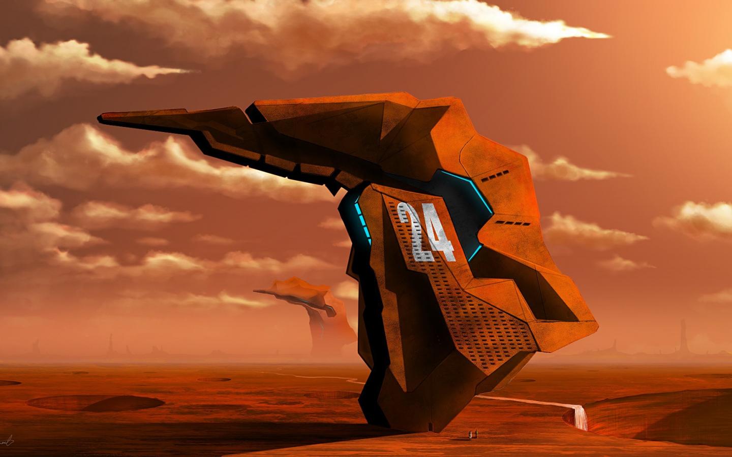 Wallpaper Spaceships on the orange planet, Kuldar Leement