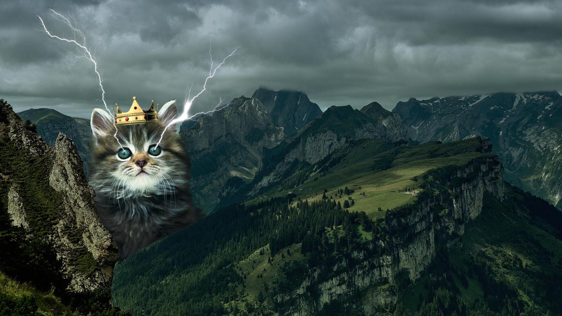 Wallpaper Cat in the crown among the mountains