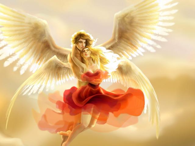 Wallpaper Loving couple of angels in the sky