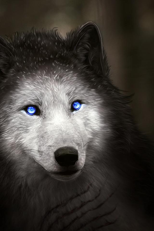 Wallpaper Fantastic white wolf with blue eyes