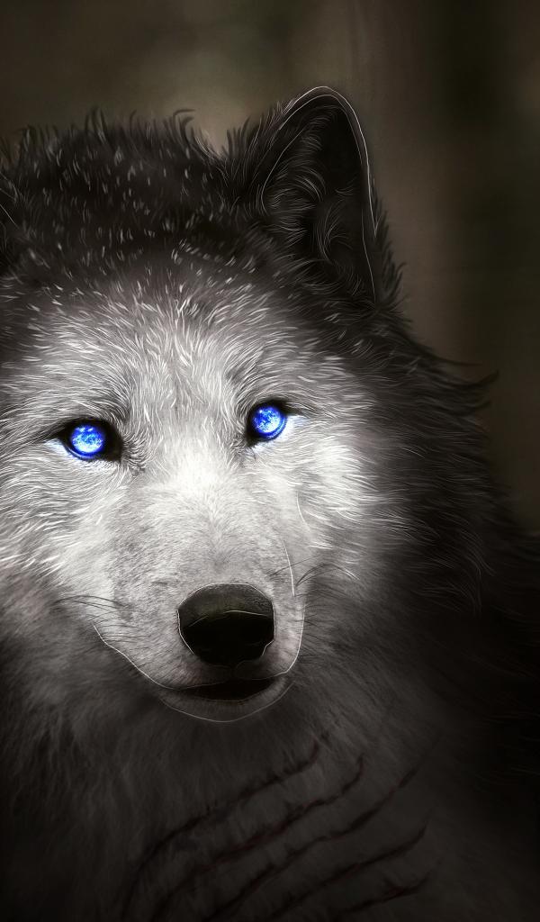 Wallpaper Big fantastic neon wolf in the sky, fantasy