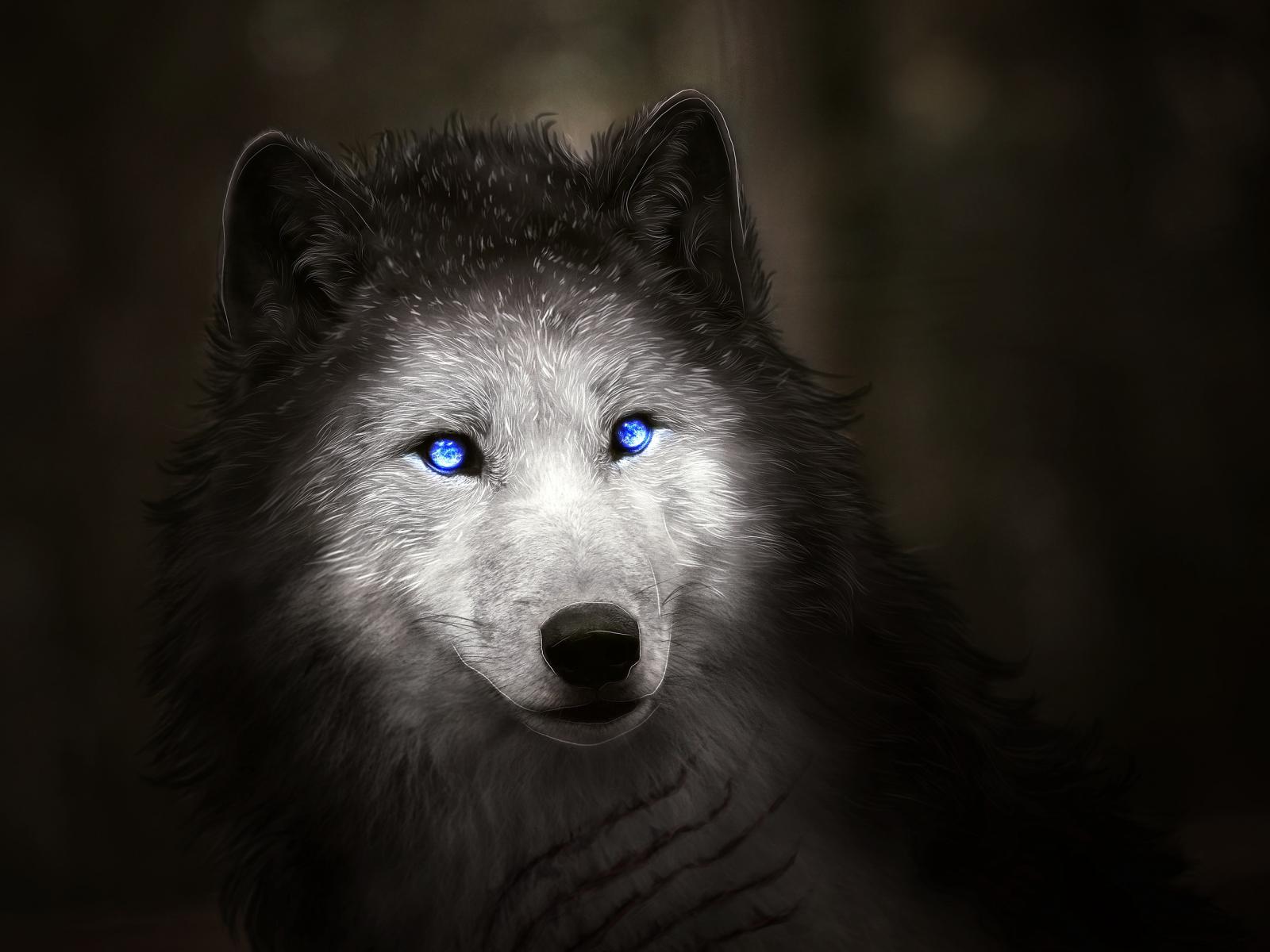 Wallpaper Big fantastic neon wolf in the sky, fantasy