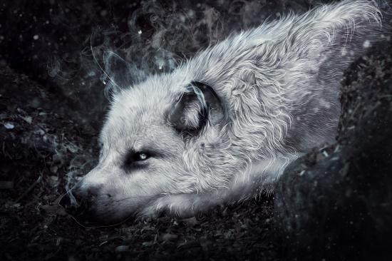 Wallpaper The fantastic wolf lies on the ground