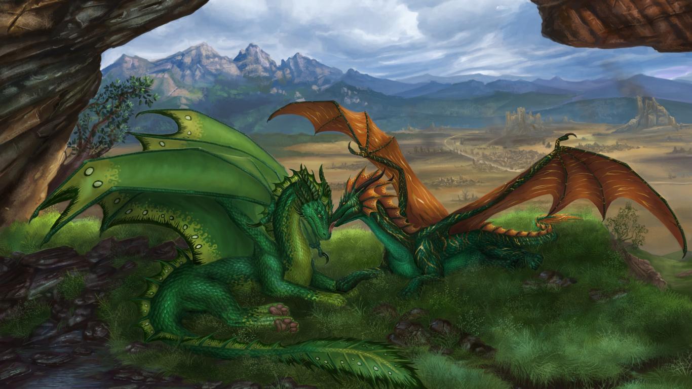Wallpaper Two big lovers dragon fantasy