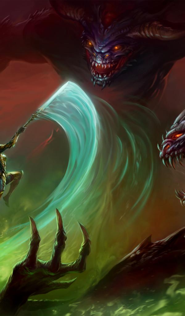 Wallpaper Woman warrior fighting with dragons fantasy