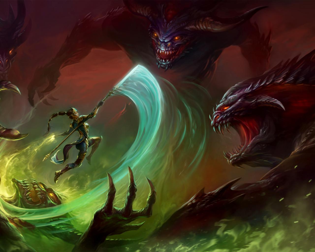 Wallpaper Woman warrior fighting with dragons fantasy