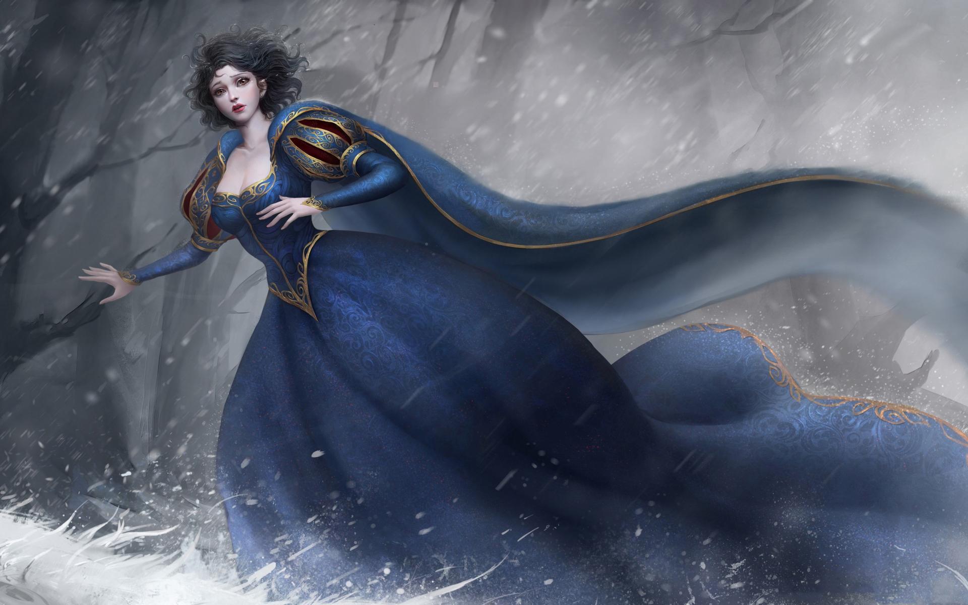 Wallpaper Fantastic Princess in a beautiful dress in a dark forest