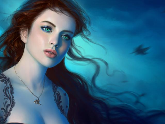 Wallpaper Beautiful young girl with green eyes, fantasy