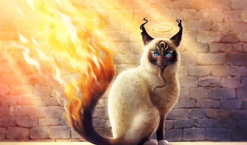 Wallpaper Magic cat with a fiery tail, fantasy
