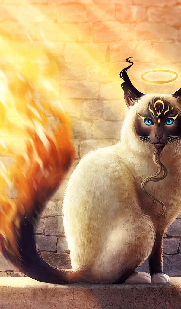 Wallpaper Magic cat with a fiery tail, fantasy