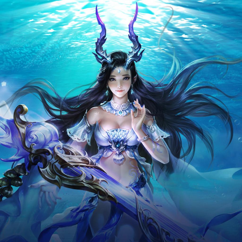 Wallpaper Mermaid girl under water, fantasy
